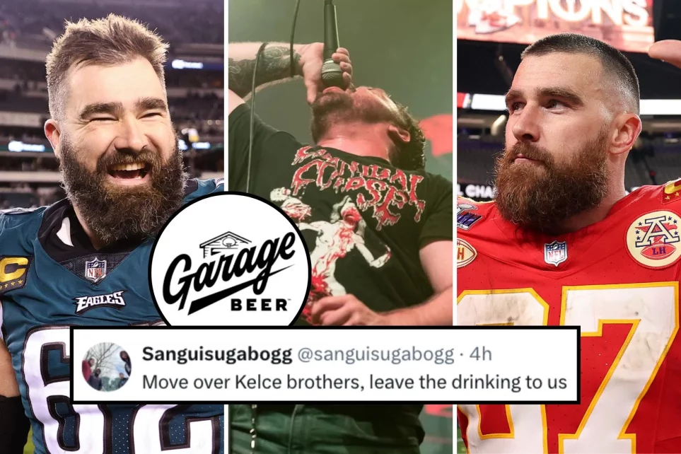NFL stars Travis and Jason Kelce unveil a death metal logo for Garage Beer, which looks like one band’s logo in particular. They even had an exchange on X. Continue